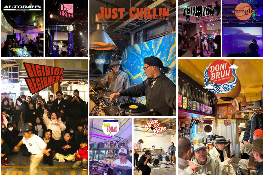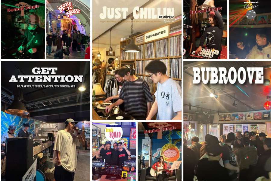 ブッキング、イベント制作、レギュラーイベント、スポットイベントを複数開催中。